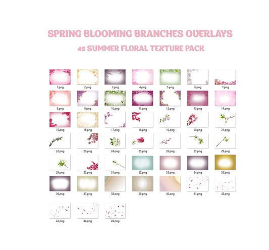45 Blooming Spring Branch Overlays Digital Flowering Trees Cherry Blossom Photoshop Effect Spring Summer Floral Painted Flower Overlay Photo