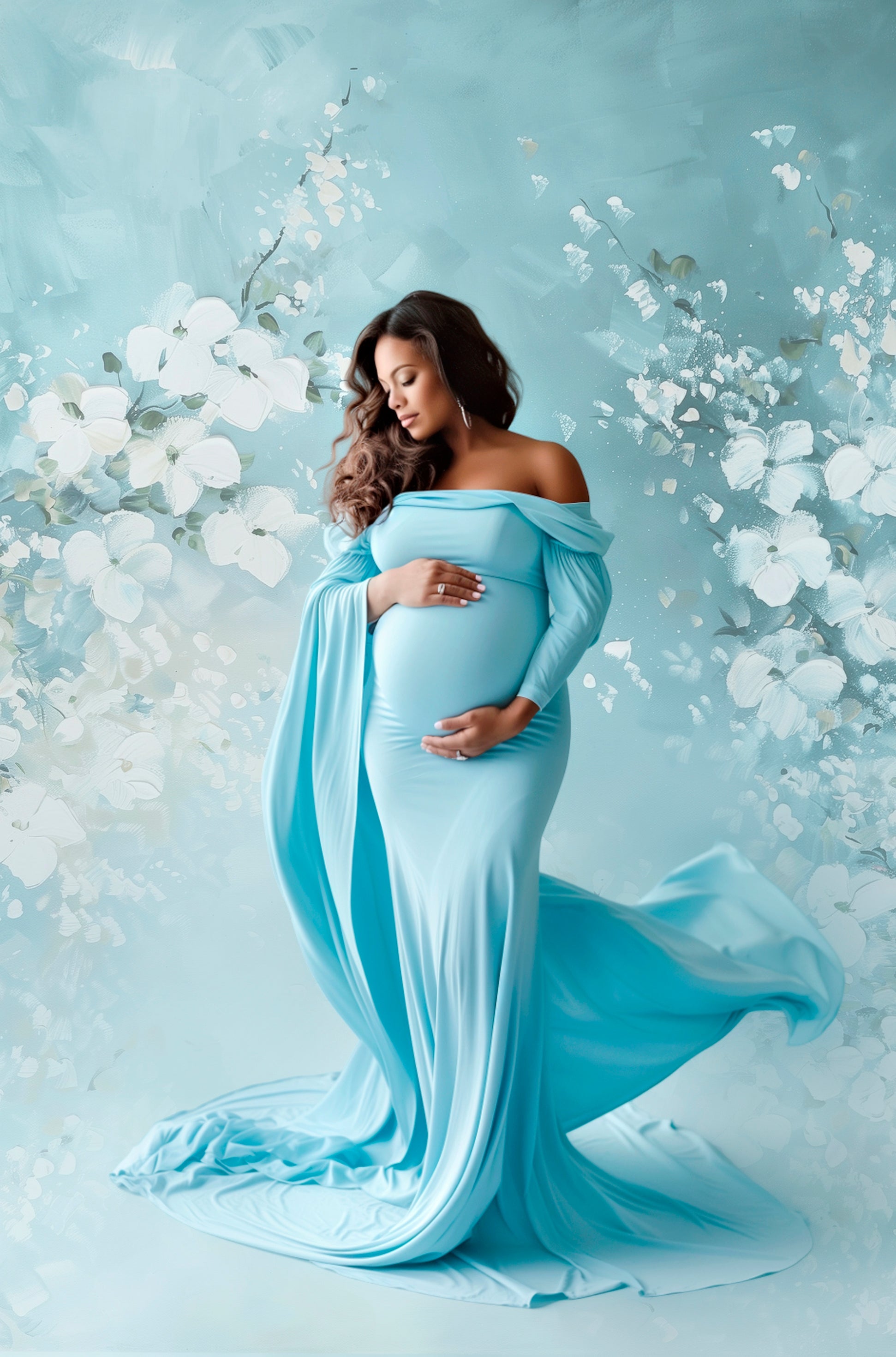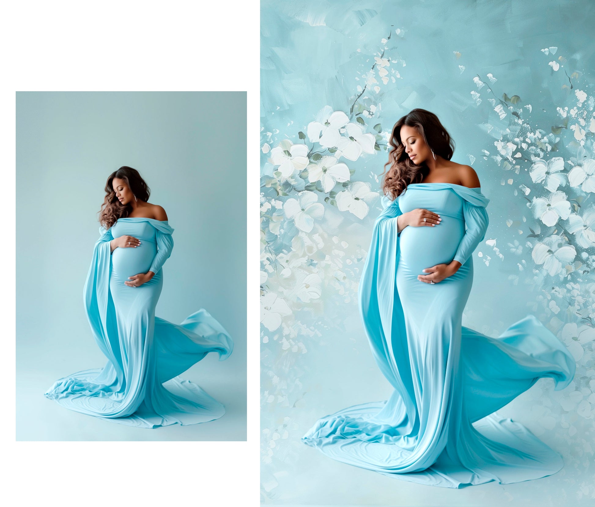 Floral Podium Digital Backdrops – Elegant Maternity Studio Backgrounds